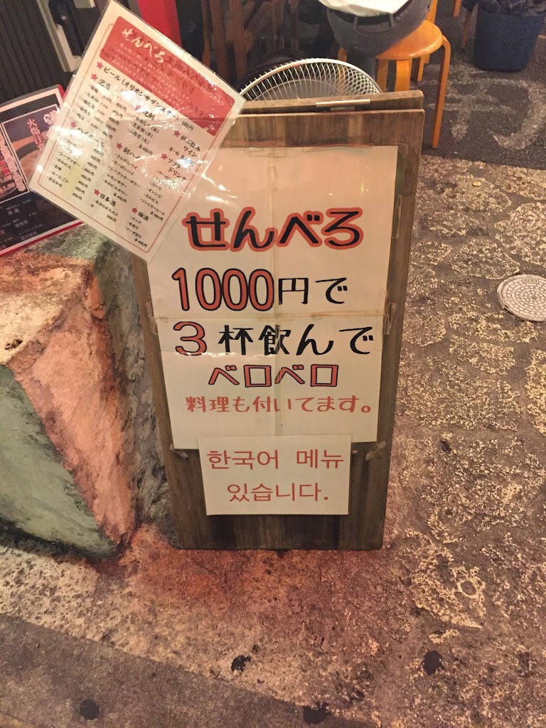 これは途中で見かけた看板ですが「せんべろ」ってすごいですね。1,000円で飲み物3杯とおつまみがセットでいただけます!