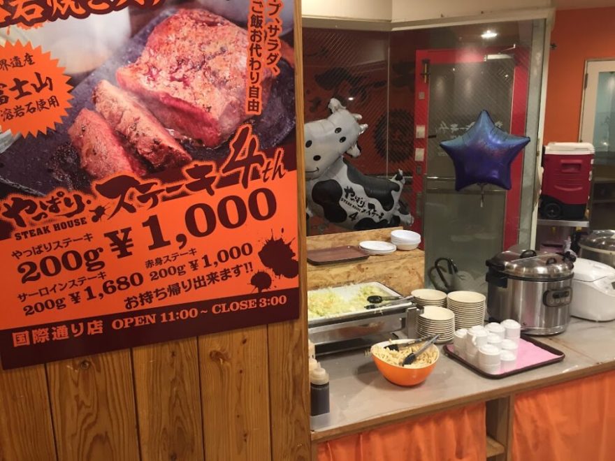 店舗の場所は昨日降りたゆいレール「牧志」から徒歩数分でいける国際通りのやっぱりステーキ4号店に行きました。
